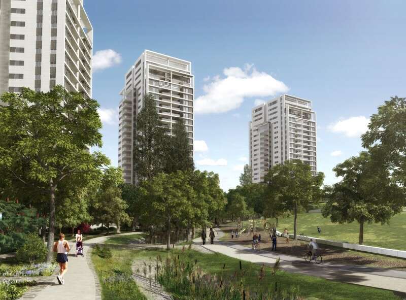 פארקים וירוק מסביב - בהחלט חשוב. פרויקט קרית האמנים של חברת דוניץ בראשון לציון // צילום: Z eyes