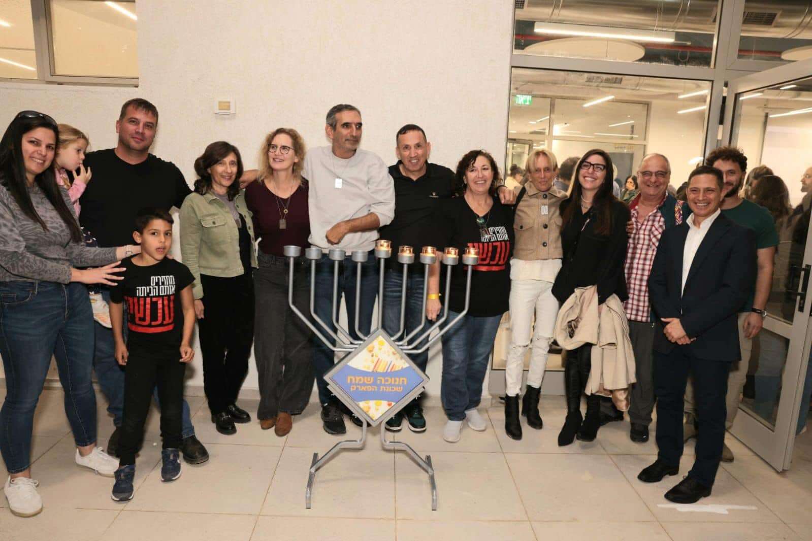 נציגי נירים בהדלקת נרות עם תושבי שכונת הפארק . צילום: דיאגו מיטלברג