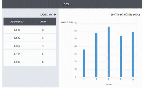 דירות 4 חדרים הן הנכס המבוקש ביותר בצפת עם 6,615 חיפושים בשנה האחרונה. חיפוש דירות לפי מספר החדרים מתוך כלל החיפושים בעיר: 2 חדרים – 13.3%, 3 חדרים – 21.3%, 4 חדרים – 24.2%, 5 חדרים – 19.8%, 6 חדרים – 21.5%.