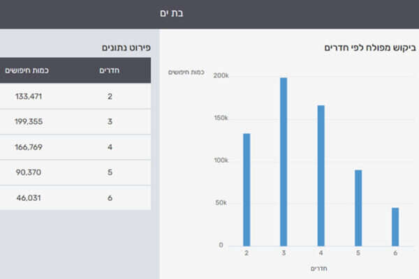 דירות 3 חדרים הן הנכס המבוקש ביותר עם 31.3% מכלל הביקושים, וקרוב ל-200,000 חיפושים בשנה האחרונה בלבד.