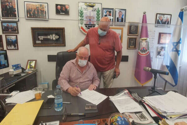 מתניה שוורץ מקבל טופס 4 מידי רונן פלוט | צילום: דוברות עיריית נוף הגליל