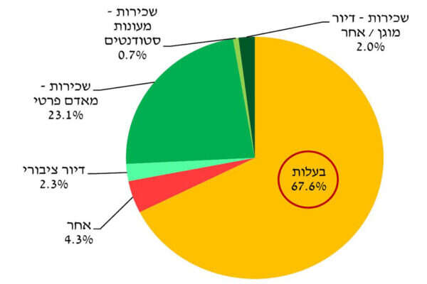 כ-60% מהאנשים שאין דירה בבעלותם, דהיינו כ-1.2 מיליון נפש, שייכים לחמשת העשירונים התחתונים, המשתכרים עד כ-7,000 שקל לחודש. ההוצאה שלהם על שכר דירה נעה בין 30% ל-40% מסך הכנסתם.