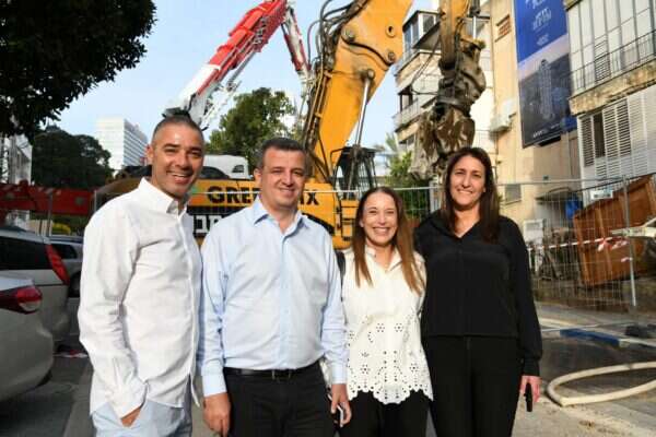 מימין: סיגל חורש מהנדסת עיריית ר״ג, דפנה הרלב מנכ"לית קבוצת אביב, כרמל שאמה הכהן ראש עיריית ר״ג וגילי שקד מנכ״ל סער שקד | צילום: רמי חכם
