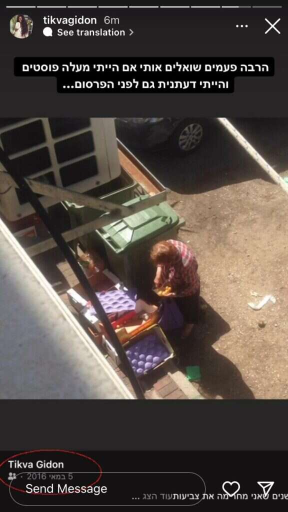 עם הכותרת "הרבה שואלים אותי אם הייתי דעתנית גם לפני הפרסום", היום (חמישי) היא שיתפה את 186 אלף עוקביה בתמונה מצמררת של שכנתה, ניצולת השואה, המחטטת בפחי הזבל. במילים חריפות וקשות שצורפו לצילום היא יצאה אז, במה שכנראה רלוונטי גם כיום, נגד הטקסיות והרטוריקה של נבחרי הציבור ביום החשוב הזה, שבאות לדבריה במקום עשיה למען אלה ששרדו את הנורא מכל.