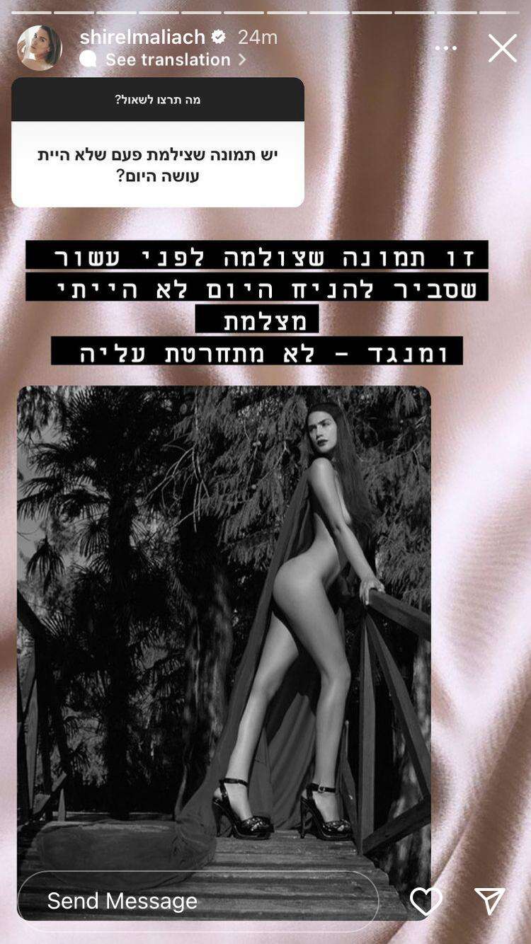 "מה את חושבת על התמונה של עדן בן זקן והביקיני?", נשאלה הדוגמנית, שנמנעה עד לאותו רגע מלהתייחס לנושא. "שכל אחת יכולה לעשות מה שהיא רוצה, ומה שעושה לה טוב. עצוב מאוד שידם של אנשים קלה על המקלדת", הביעה צער. "יש תמונה שצילמת פעם ושלא היית מצלמת היום?", דרשו הגולשים לדעת. "זו תמונה שצולמה לפני עשור שסביר להניח שהיום לא הייתי מצלמת. מנגד, לא מתחרטת עליה", הבהירה שיר על רקע תמונה שלה בעירום מרומז.