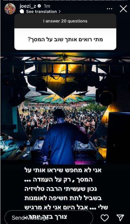 ג'וזי זירה הקצה 20 שאלות ל-364 אלף עוקביו, במהלך סדרת שאלות ותשובות שקיים בעמודו האישי באינסטגרם. הפרזנטור, שהפך ממתמודד תוכניות מציאות בשנים האחרונות לדי. ג'יי מבוקש במיוחד כיום, שיתף את העוקבים בתחושת המיצוי שהוא חש מהופעותיו בטלוויזיה, וסיפק הצצה להיערכות שלו לקראת העתקת מגוריו ממש בקרוב, ממדינת ישראל לאחת המדינות החמות בדרומה של ארצות הברית - שבה הוא כבר שהה בעבר.