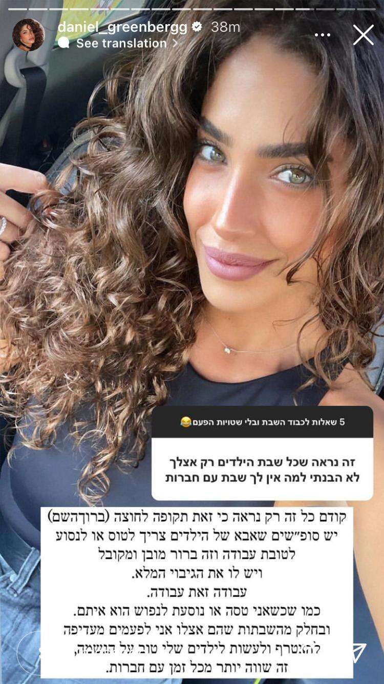 "בחלק מהשבתות שהם אצלו, אני לפעמים מעדיפה להצטרף ולעשות לילדים שלי טוב על הנשמה, זה שווה יותר מכל זמן עם חברות", פסקה. "מה היית משפרת בעצמך?", אתגר אחד המגיבים. "להיות יותר סובלנית. לדעת לנשום, לחשוב לפני שמגיבה בשעת כעס. ליהנות מהדרך, ולא לתת ללחץ להשפיע עליי", השיבה הכוכבת.