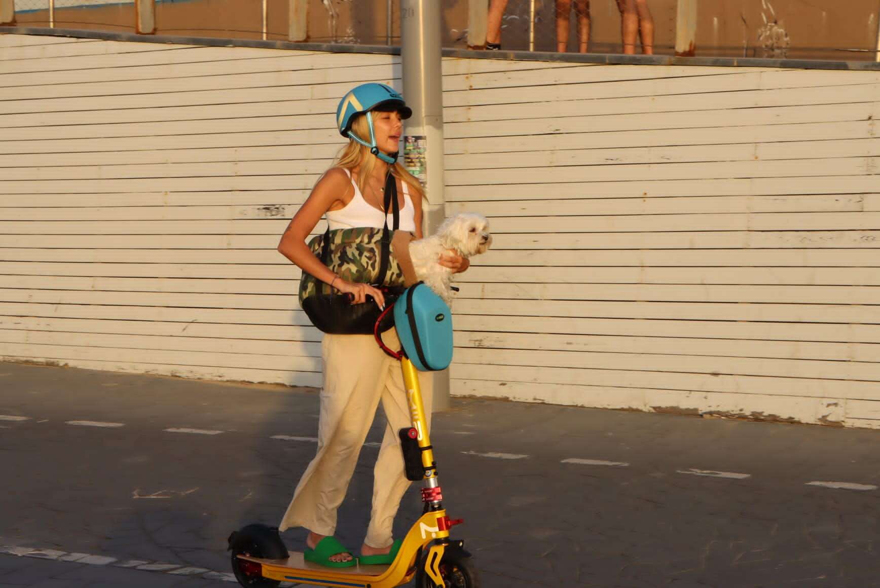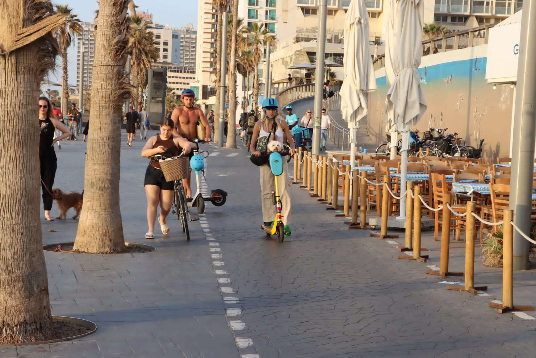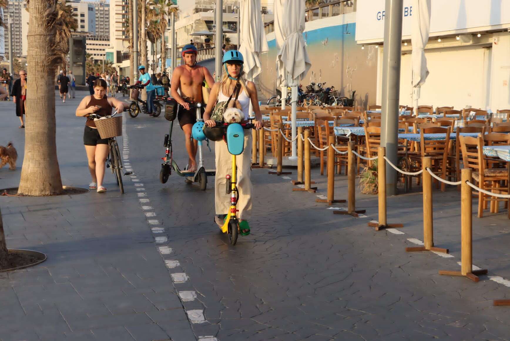 מאיה קיי, טל מורד והכלב רוכבים בטיילת תל אביב. צילומים: ניר פקין