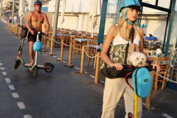 מאיה קיי, טל מורד והכלב רוכבים בטיילת תל אביב. צילומים: ניר פקין