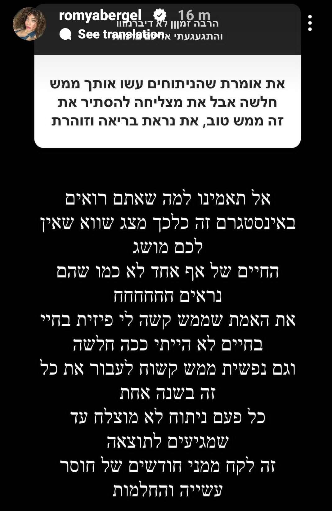 "אל תאמינו למה שאתם רואים". הסטורי של אברג'יל // צילום מסך מתוך אינסטגרם