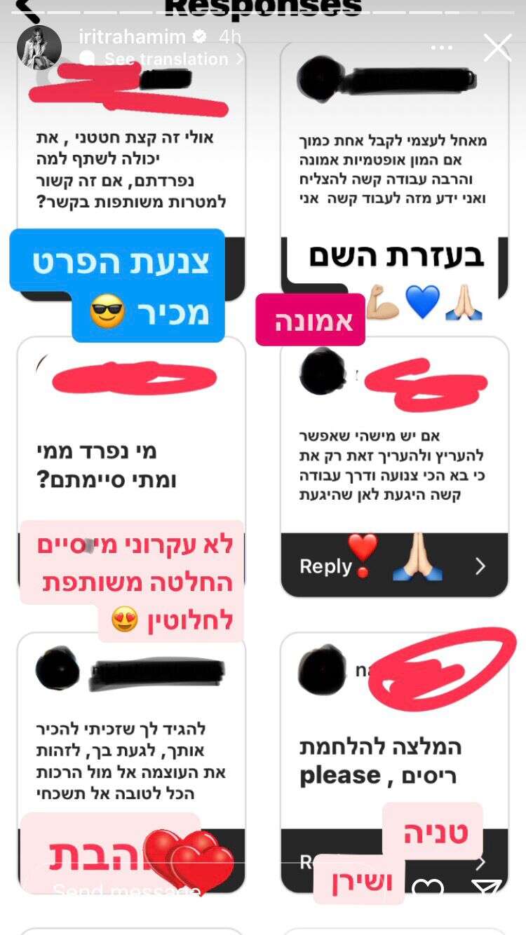 "אולי זה קצת חטטני. את יכולה לשתף למה נפרדתם? והאם זה קשור למטרות משותפות לקשר?", ניסו הגולשים את מזלם בעוד שאלה אישית. "צנעת הפרט, מכיר?", סירבה הפעם אירית לשתף פעולה והחזירה בשאלה.