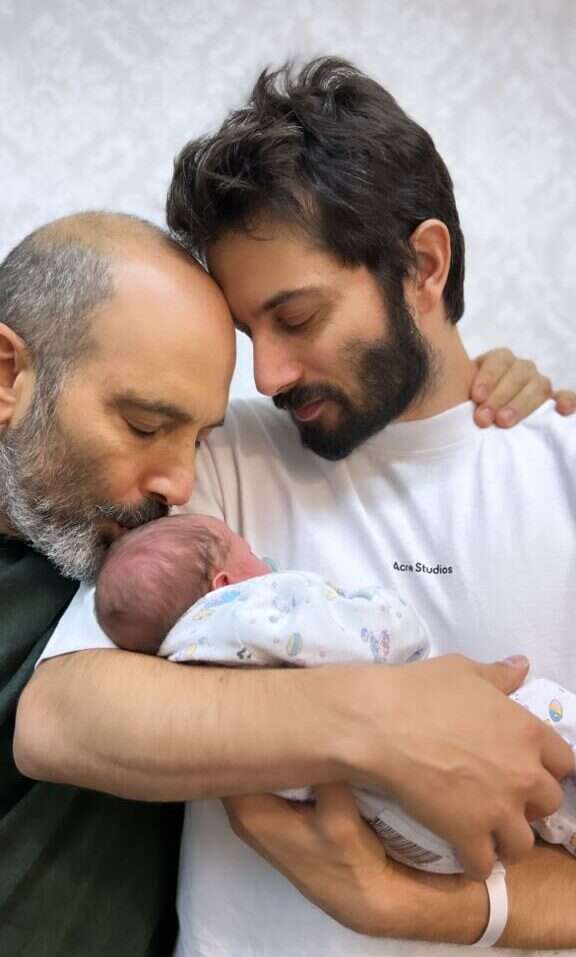 הזמר והשחקן ובעלו איתי וייזר חובקים תינוקת חדשה שמצטרפת למשפחה