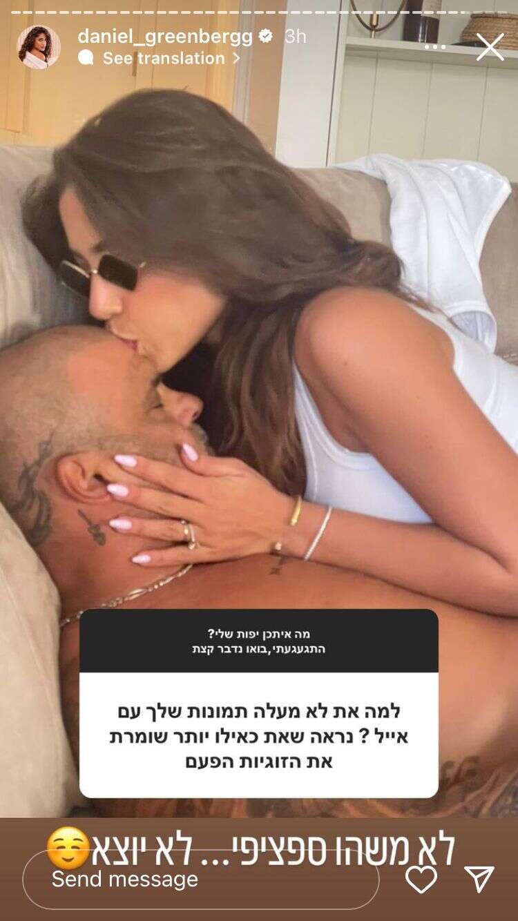 "למה את לא מעלה תמונות שלך עם איל? נראה שאת כאילו יותר שומרת על הזוגיות הפעם", ספק הלינו ספק עקצו. "לא משהו ספציפי", טענה גרינברג. "לא יוצא". לתשובה הזו, שברקע שלה בחרה גרינברג בתמונה של השניים שבה הפגינה כלפיו אהבה, התווסף לאחר מכן סרטון לא פחות חם ואוהב. "אחת העוקבות שלי שאלה אותי למה אני לא מעלה איתך תמונות", עדכנה דניאל את איל. "הסיבוב השני חסוי", השיב בחיוך גדול. בהמשך גרינברג נשקה לגולן לעיני שני ילדיהם המשותפים. "אני שרופה על המבטים של רון ומיאל כשאנחנו מפגינים אהבה", כתבה.