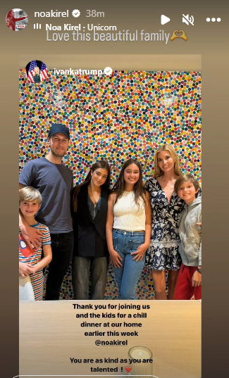 הכוכבת הישראלית, נועה קירל, התארחה בתחילת השבוע בביתם של איוונקה טראמפ וג'ארד קושנר לארוחת ערב משפחתית.