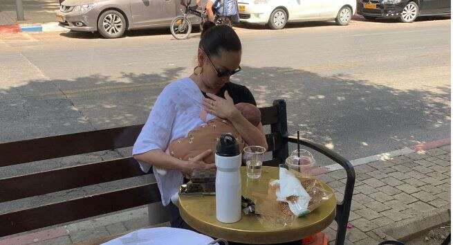 "לא יודעת כמה זמן נחתי. פתאום פתיחה 8.5, לחץ חזק באגן. צירים מורגשים שוב. אני נושמת חזק, משמיעה קולות מוזרים שממש עוזרים לי. לא מוסיפה אפידורל, רוצה להרגיש הכל. רוצה להיות אקטיבית בלידה. שוב לא יודעת כמה זמן עבר. המיילדת אומרת לי ללחוץ. שוק! אני מסתכלת על אייל, הוא עליי, שנינו לא ציפינו שזה הגיע, שזה הגיע ממש עכשיו. לחיצות. 30-25 דקות אדם על הבטן שלי. חם, נעים, יפה, שלנו".