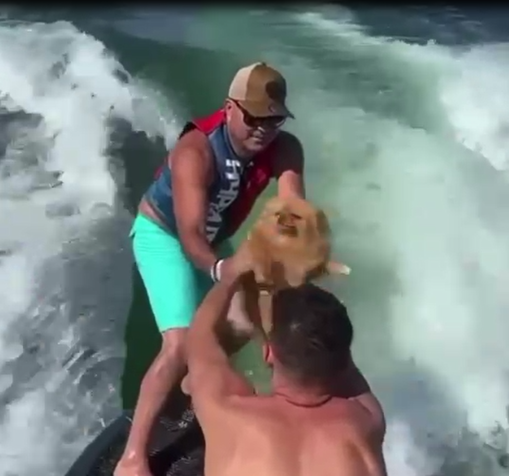 סערה סביב סרטון של בן זיני ואדם אליוף: שני כוכבי הרשת ופליטי "האח הגדול" העלו לאינסטגרם סרטון שבו הם נראה מעבירים כלבה קטנה לגולש, בזמן שעמד על גלשן מאחורי הסירה שבה השניים שטים.