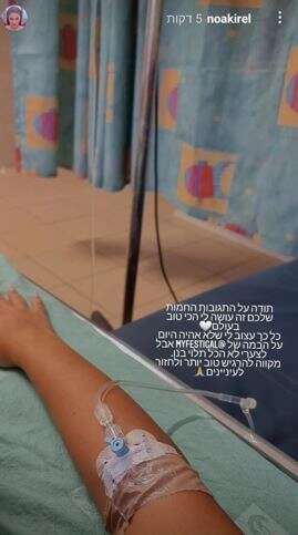 קירל עצמה העלתה לפני זמן קצר תמונה שלה מבית החולים כשידה מחוברת לאינפוזיה וכתבה: "תודה על התגובות החמות שלכם, זה עושה לי הכי טוב בעולם. כל כך עצוב לי שלא אהיה על הבמה של הפסטיגל, אבל לצערי לא הכל תלוי בנו. מקווה להרגיש טוב ולחזור לעניינים".