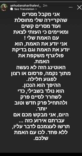 "זה לא נעשה מתוך נקמה": השחקן מפרסם סטורי שבו הוא מגיב על הודעות קשות שהוא מקבל לאחר החשיפה על אודות ההטרדה המינית שחחוה לכאורה מצד המגיש