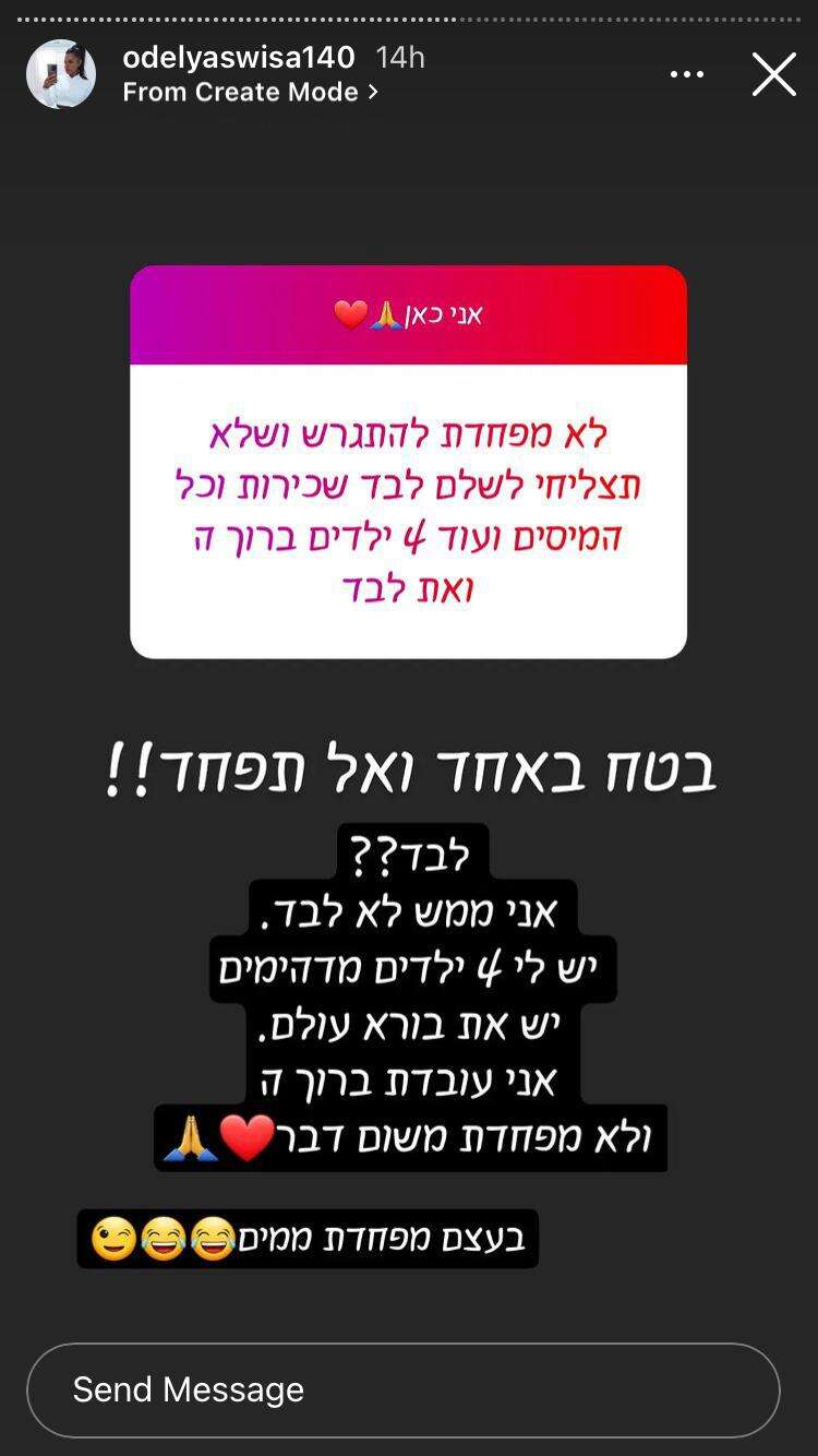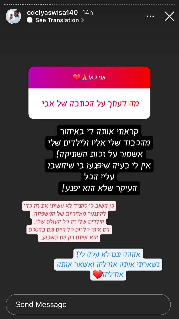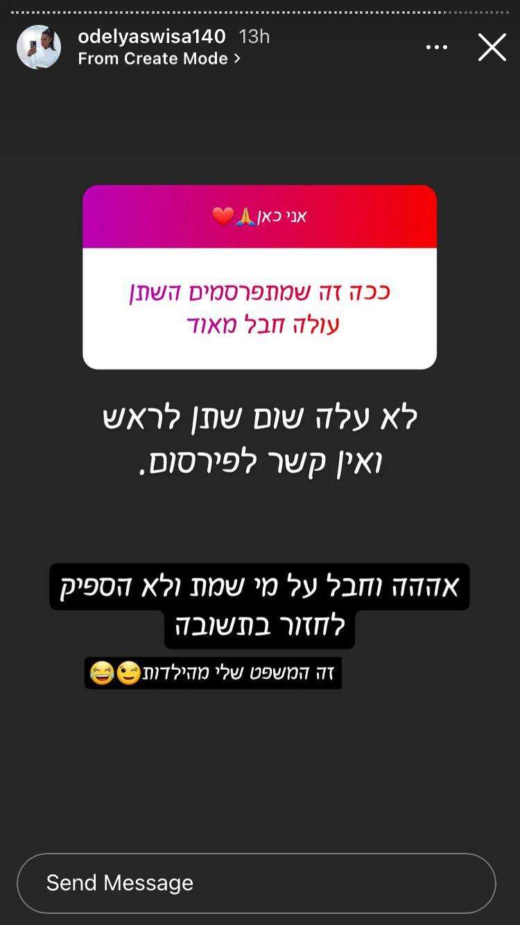 אמש (שבת) פתחה אודליה סויסה בעוד סשן שאלות ותשובות עם עוקביה באינסטגרם, כשהפעם במוקד העניין הראיון שהעניק אבי סויסה, הגרוש הטרי שלה, לשבועון "לאישה", ובו הטיח בה האשמות קשות וטען, בין היתר, להתנהלות פוגענית מצידה ולשינוי קיצוני שחל בה בעקבות הפרסום. כאמור, הגולשים לא התאפקו והסתקרנו לדעת מה אודליה חושבת על כך, והיא מצידה פתחה הכל.