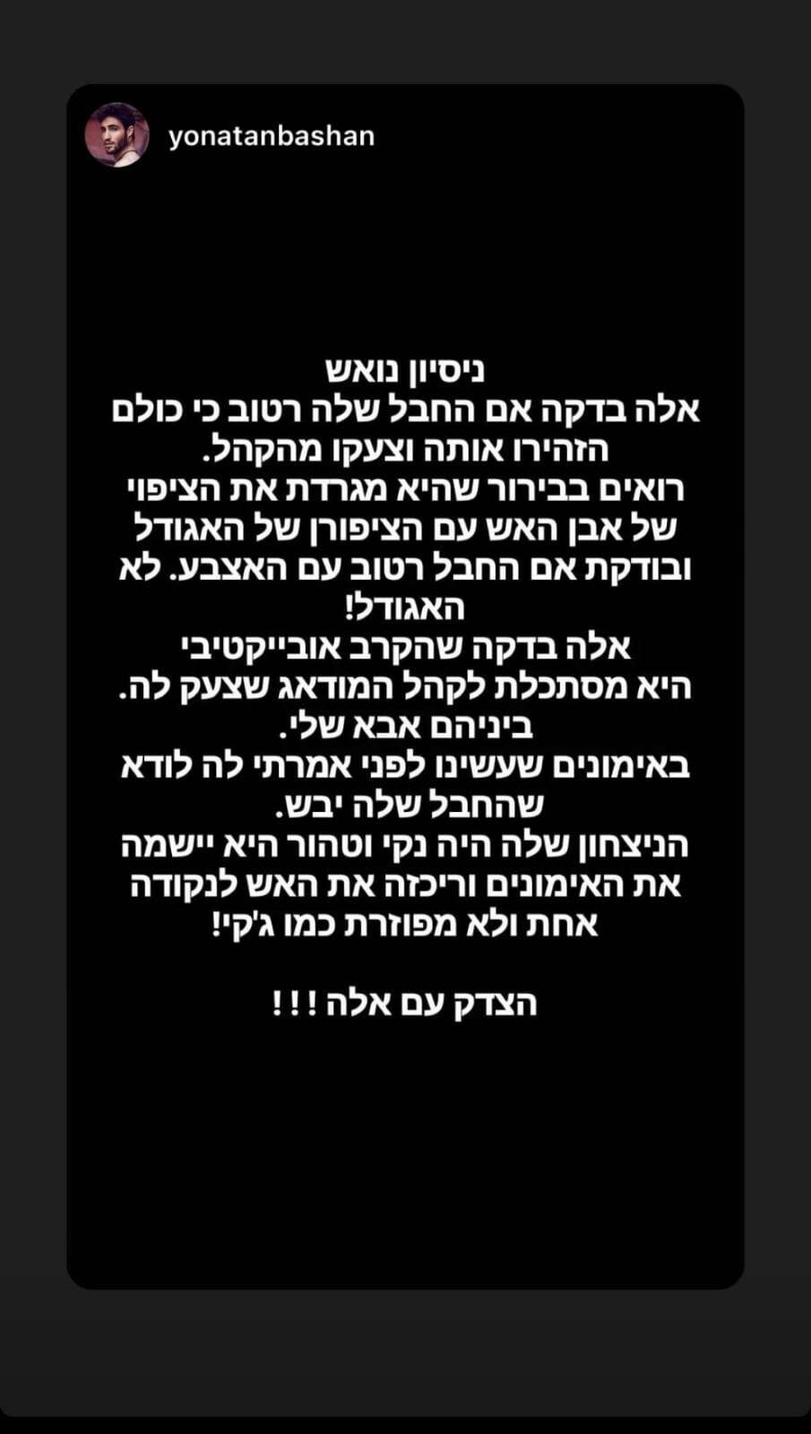 גם גדי, חברה הטוב של אלה מהאי, יצא להגנתה: ״אני צפיתי בקטע הזה עשרות פעמים", כתב בסטורי. "המריחה בחוט נעשתה לצורך בדיקה שהחוט אינו רטוב. ניתן לראות שהיא משפשפת את האבן באגודל ומוודאת שהחוט אכן יבש״.