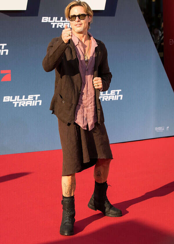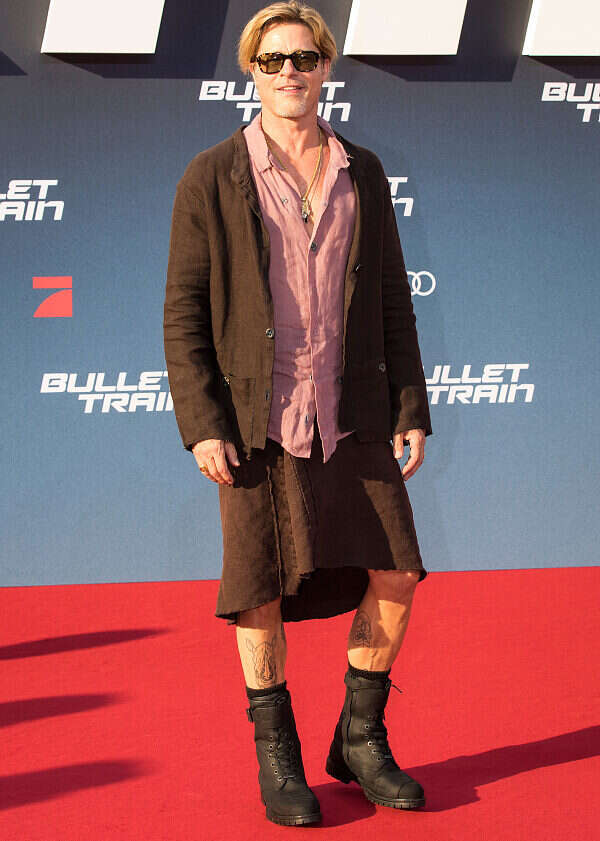 הארי סטיילס מאחוריך: אחרי שהכוכב הבריטי נירמל את תופעת הגברים שלובשים חצאיות, מגיע הדור הוותיק של הוליווד בדמותו של בראד פיט, ומוכיח שגם הוא לגמרי יכול לכבוש את השטיח האדום לבוש בחצאית ולא בטוקסידו מסורתי.