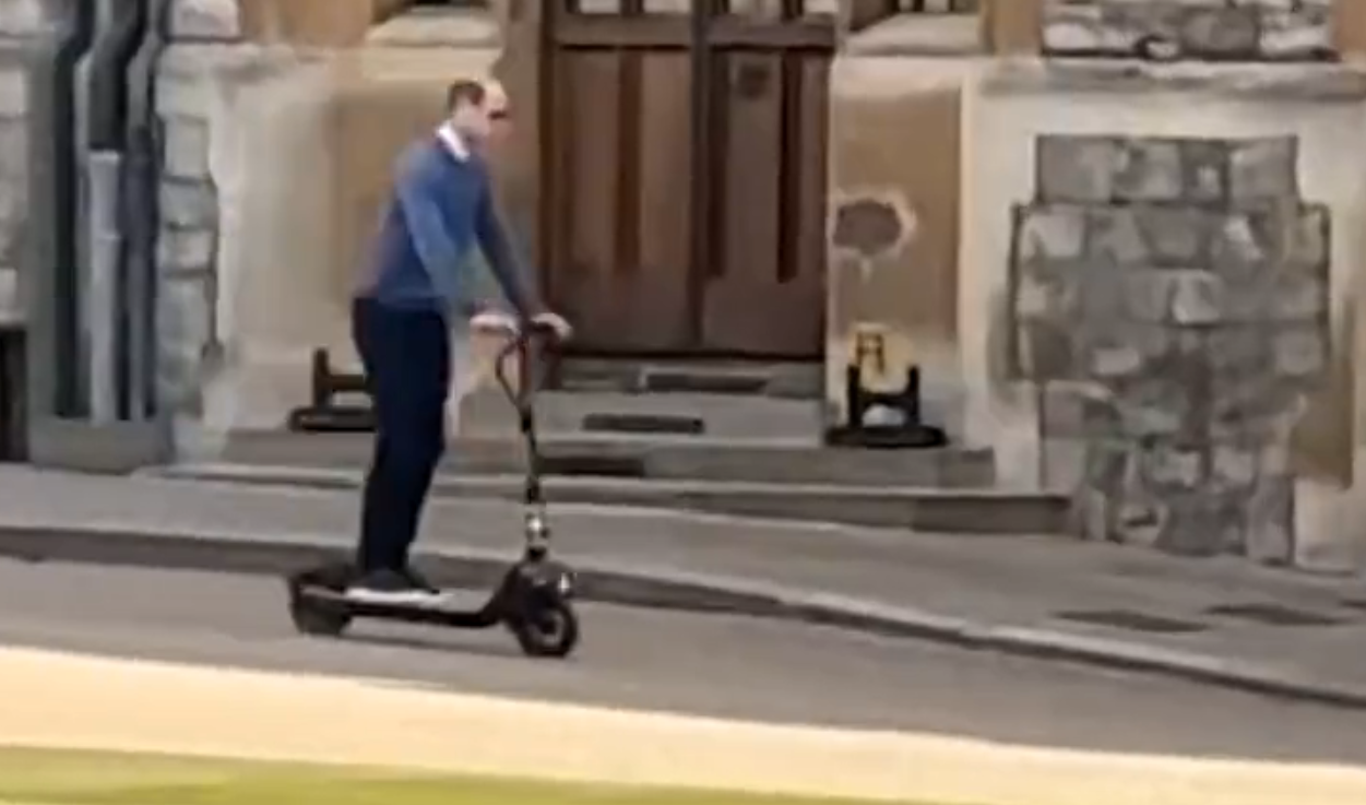 בסוודר כחול וחולצה לבנה - לבוש מהודר ולא אופייני לרוכבי קורקינט - נתפס הנסיך מווילס ע"י עוברי אורח שביקרו בטירה. אחת מהן, פרסמה את הסרטון בחשבון הטיקטוק שלה וכתבה "כשאתה צריך להגיע לשירותים אבל הם בצד השני של הטירה".