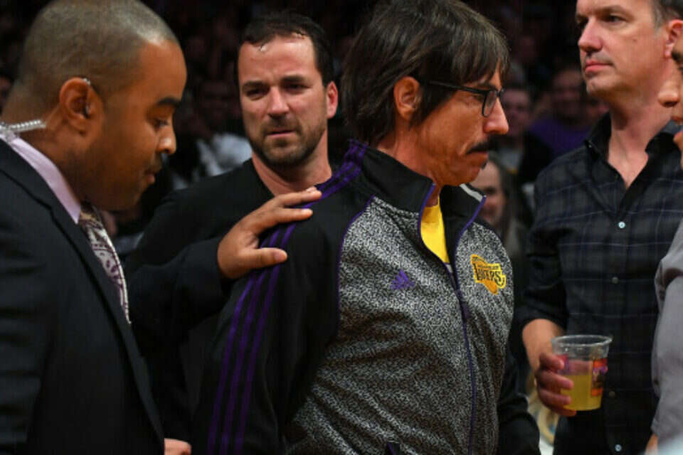 חריף על המגרש: משחק הכדורסל הטעון בין קבוצות הכדורסל של הלוס אנג'לס לייקרס ליוסטון רוקטס ביום שבת האחרון, שכלל יריקות ואלימות פיזית, חשף גם צד עצבני אצל סולן להקת הרד הוט צ'ילי פפרז אנתוני קידיס.