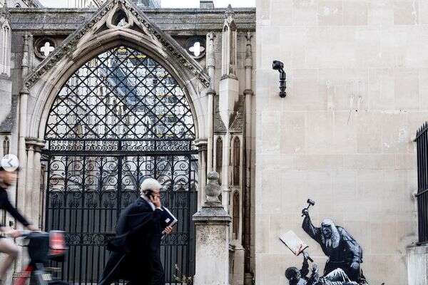 המשטרה בלונדון חסמה את הגישה לציור הקיר החדש של האמן בבתי המשפט המלכותיים במרכז לונדון שעות ספורות לאחר הופעתה. היא כוסתה ביריעות פלסטיק שחורות ומחסומים, ומאבטחים הוצבו סביבה. שירות בתי המשפט המלכותי הודיע כי הציור יוסר.
