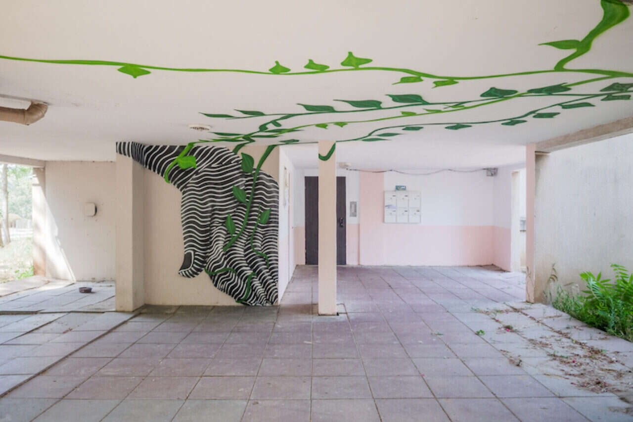 שהרבני בחר לעבוד על קיר באחד ממתחמי המגורים ברחוב החשמונאים בלוד, הרחוב שבו התחוללו האירועים האלימים בחודש מאי בזמן מבצע שומר החומות. אותו קיר חוסם ומפריד בין החוץ לפנים.