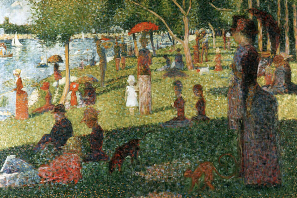 לאחר עבודה על טיוטות רבות על גבי לוחות קטנים, הוא סיים ב-1884 את יצירת המופת "יום ראשון אחר הצהריים על גדות האי לה גרנד ז'אט".