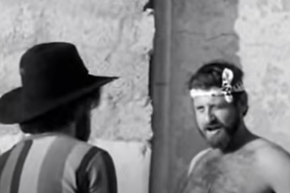אורי זוהר כמורה קרטה דובר יידיש מנסה לשכנע את צבי שיסל להקים עימו משפחה.