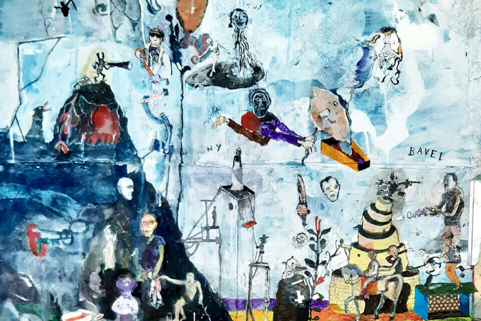 אנשים הולכים במסדרונות הלוך ושוב. הם לבושים בחלוקים בצבע תכלת שמתלכדים עם צבע הלינוליאום. הם גוררים רגליים, ואלה שעומדים דורכים במקום. אני לוחשת למיכל: למה הם דורכים במקום? והיא אומרת שזאת תופעת לוואי של התרופות. התאורה חלשה. חלק מהאנשים ממלמלים, חלק יושבים על ספסלים שצמודים לקירות ובוהים. הם לא רואים זה את זה ויש תחושה שהם אחד.