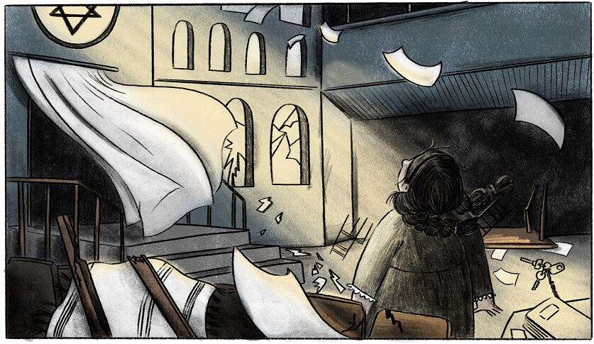 סוף־סוף שחרר את אחיזתו הגבאי בדלת בית הכנסת והיא נפתחה. לפניי נגלה אולם התפילה והוא ריק ואין בו אף לא אדם אחד. כאילו בא הרוח וסחף את הכל. אין איש או אישה בכל המבנה, וצעדיי מהדהדים בין ספסלי העץ הריקים. על משענות היד זרוקות טליתות שנשמטו ובעזרת הנשים ממחטות וצרורות מפתחות פזורים על הרצפות.