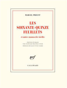 פרוסט ממשיך לרגש המונים, בעיקר בצרפת, ונשמתם של רבים במדינה נעתקה ב־18 במארס השנה, כאשר התפרסם לראשונה ספרו "Les Soixante-quinze feuillets" (שבעים וחמישה עמודים). ספר זה נכתב על ידיו עוד לפני העבודה על ספרי "בעקבות הזמן האבוד", ונחשב במשך יותר מ־60 שנה לאבוד. לפי הוצאת "גלימאר", בית ההוצאה של הספר, כלולים בו מפתחות להבנת היצירה המרכזית של פרוסט.