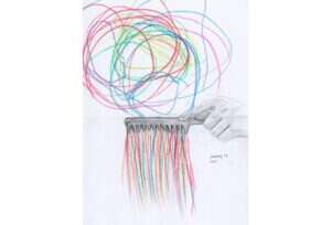 עם הימשכות הסגר הפכו הרישומים המשותפים לעניין קבוע, סוג של יומן או ממואר ויזואלי של האם והבת בזמן מגיפה. חלק מרישומיה של האם הם מעין פרשנות לרישומיה של הבת: מה שנראה כמו קשקוש הופך לסרט של מתעמלת, לסדין, לנוף קרחוני, לבור. אבל בהדרגה מתחילים רישומיה של אסימיני להפוך רפלקסיביים יותר. היא מציירת על הקשקוש סיכות, כאילו הרישום שלה בא להדק את השערות המבולגנות שתחתיו, או שהיא מציירת ליד הקווים המקושקשים מסרק שכאילו "מסרק" אותם.