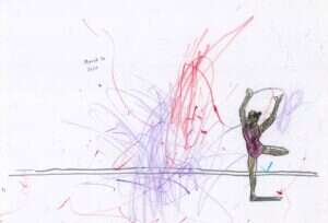"כמו כל אמא", אומרת אסימיני, "הסתכלתי על הרישומים הראשונים שלה בהתפעלות. ראיתי את האבולוציה של הקו - קווים קצרים שהתחילו להתארך עם הזמן. עין שמחוברת ליד, שמחוברת לדף. היא ציירה המון, והבנתי שהולכות להיות לנו בעיות עם אספקת הדפים. אז הסתכלתי על הרישום שלה, ראיתי שיש מקום בדף, והוספתי מתעמלת.