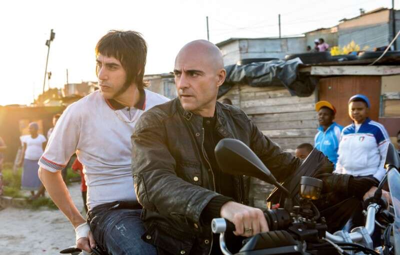 ברון כהן ומארק סטרונג ב"גרימסבי". שריפה, אחים, שריפה // צילום: פורום פילם
