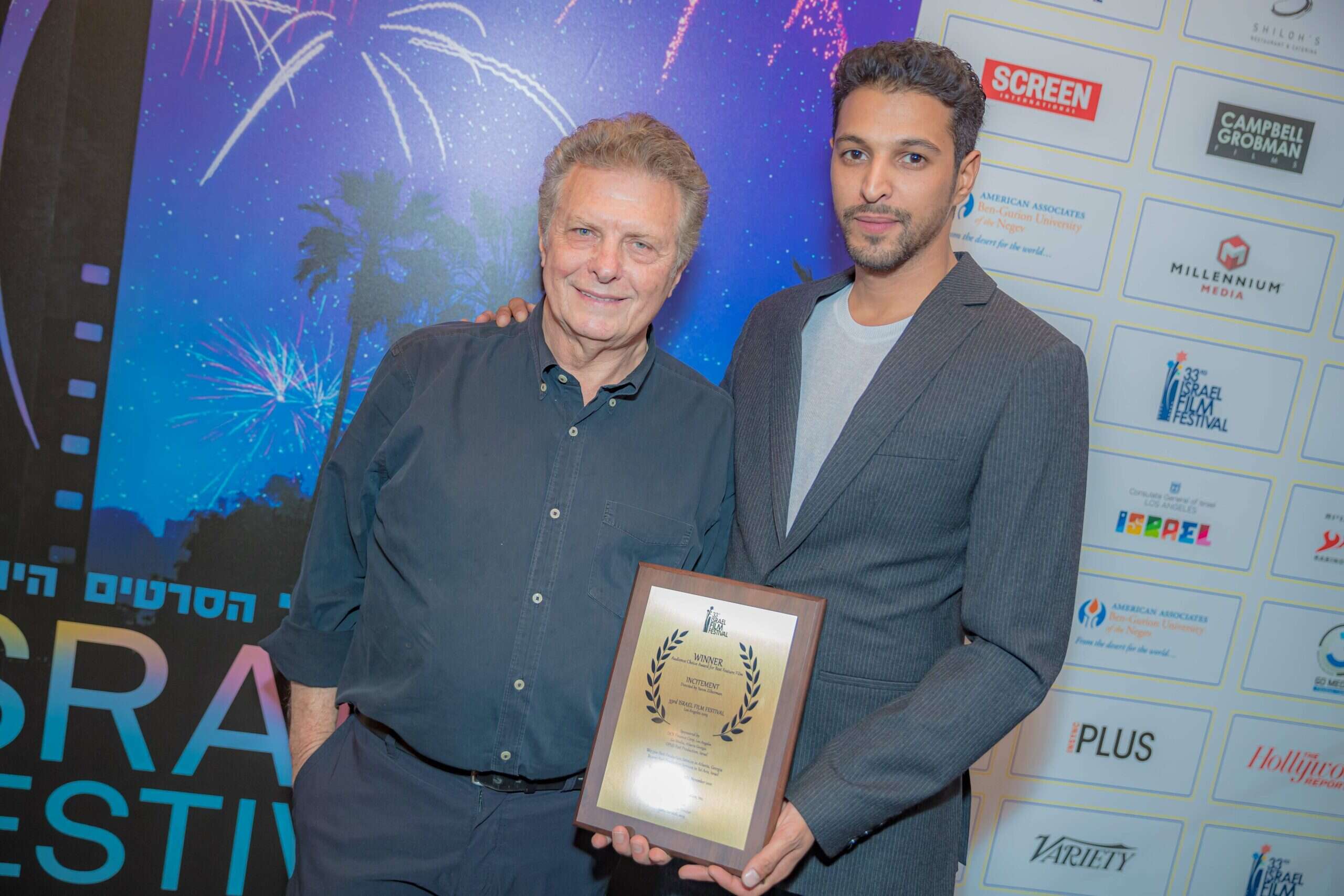 צילום: Pal Photography // הזוכה הגדול: "ימים נוראים". יהודה נהרי הלוי ומאיר פניגשטיין בפסטיבל הקולנוע הישראלי