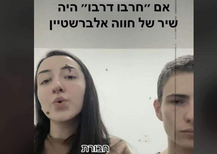 אלו הן רק חלק ממילות השיר שהפך תוך זמן קצר מאוד למזוהה במיוחד עם מלחמת חרבות ברזל. צמד טיקטוקרים תחת היוזר ofirberenblat החליטו להעלות קטע משעשע בו הם מבצעים גרסת כיסוי ל"חרבו דרבו" בסגנון הזמרת הוותיקה והמוערכת חוה אלברשטיין. התוצאה משעשעת ומובאת לפניכם.