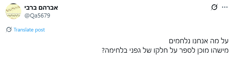 ולאלו שעדיין מגמגמים את השפה וזקוקים לתרגום: לגפני חשוב עכשיו לסיים את המלחמה כדי שהלחץ על גיוס החרדים יקטן https://t.co/9SrqfGhkO4