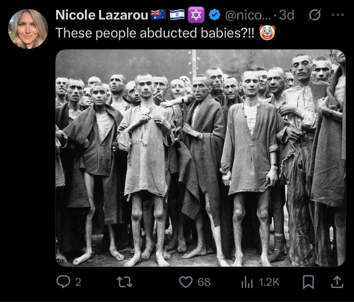 גולשת אחרת העלתה בתגובה תמונה של יהודים כחושים בשואה וכתבה: "האנשים האלה חטפו תינוקות?!", בצירוף אימוג'י של ליצן. "זה לא היה כיפי או עובדה", כתב גולש נוסף בהתייחס לביטוי "עובדה כיפית" (Fun Fact) שפתח את הציוץ.