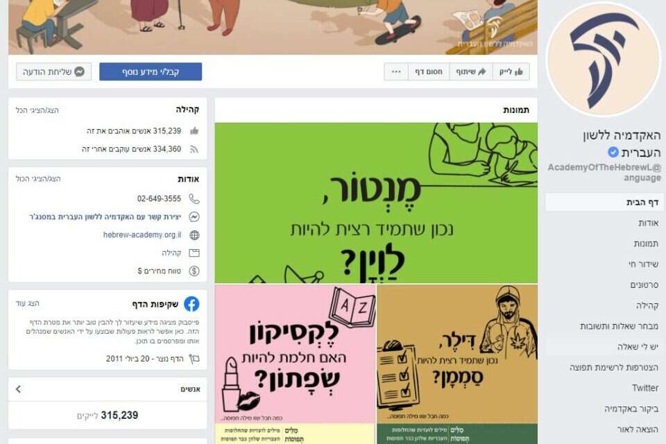אחד העמודים הכי אהודים ברשת הוא עמוד הפייסבוק של האקדמיה ללשון העברית. הגוף, שנחשב במשך שנים "דוד מיושן", למעשה חי ובועט בקרב הדור הצעיר ברשתות החברתיות, ומצליח להוציא מהציבור לא מעט פניות, תגובות ואהדה.