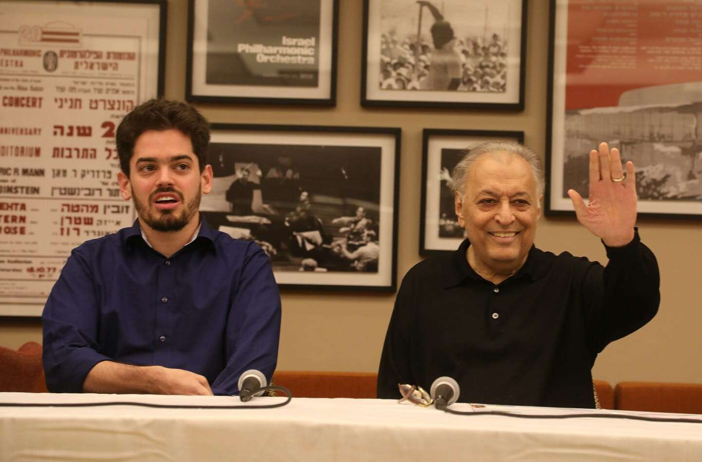 לצד מהטה ישב להב שני, מנהלה המוזיקלי המיועד של התזמורת שנבחר בשנה הקודמת לרשת את מקומו של מהטה. "לראשונה, אחרי שנים ארוכות של מסיבות עתונאים, יושב לצדי קולגה," אמר מהטה בחיוך, "אני מאוד שמח שלהב כאן, הוא נבחר פה אחד לתפקיד בידי התזמורת אחרי מסע חיפושים נרחב אחר יורש".