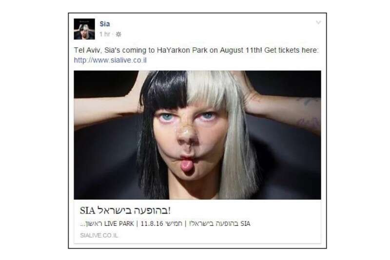 עכשיו זה רשמי: סיה מגיעה לארץ