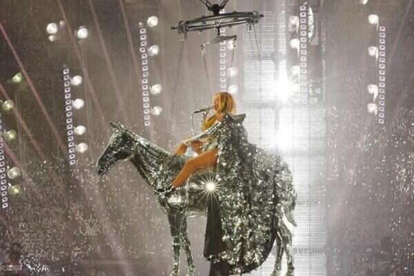 עם טנק שיוצאים ממנו זיקוקים, סוס מנצנץ שעליו היא מרחפת באוויר מעל הקהל, ורובוטים שמשמשים לה רקדני ליווי, קווין בי סוחפת את 50 אלף האנשים שבאו לראותה מקצות הגלובוס אל מסע של כמעט שלוש שעות, שמשאיר לא מעט לסתות שמוטות ביציעים.