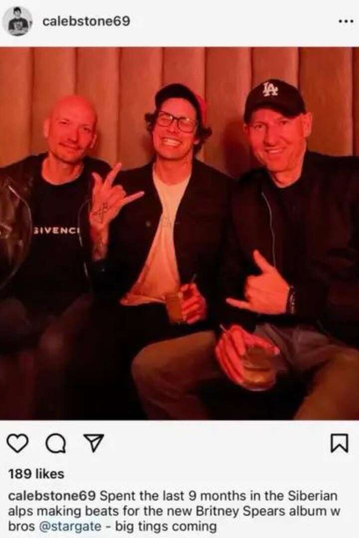ספירס אמנם טרם הכריזה על כך בעצמה, אך המפיק קיילב סטון העלה ביממה האחרונה לחשבון האינסטגרם שלו פוסט עם תמונה שבה הוא נראה מצולם עם צמד המפיקים/כותבי השירים סטארגייט, בליווי הכיתוב "ביליתי את תשעת החודשים האחרונים בהרי אלפים הסיביריים, יוצר ביטים לאלבום החדש של בריטני ספירס עם האחים שלי, סטארגייט", כשהוא מתייג אותם ומוסיף: "יש דברים גדולים בדרך". סטון אמנם כבר מחק את הפוסט המפליל, אבל למרבה המזל האינטרנט זוכר הכל וצילום המסך רץ ברשת.