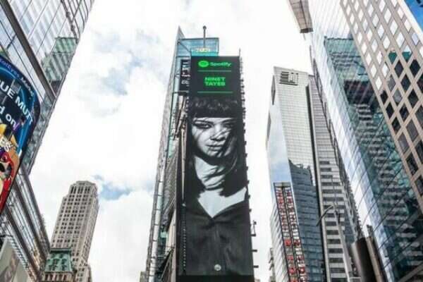 טייב (37) מככבת על השלט הענק כחלק מפרויקט Equal של ספוטיפיי, שנועד לקדם מוזיקאיות מובילות מכל העולם. עד כה זכו לככב בו גם נועה קירל ומארינה מקסימיליאן.