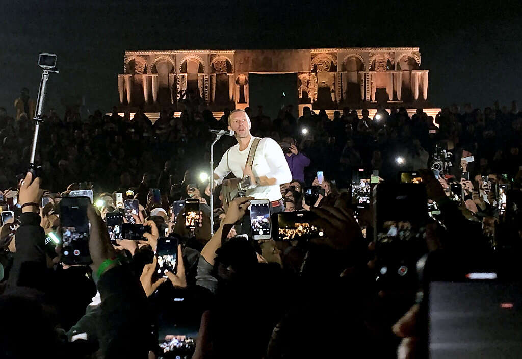 על רקע המבנה העתיק. קולדפליי בירדן // צילום: רז ישראלי