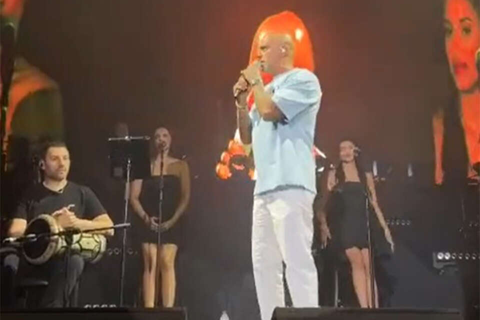 "אתמול הופעתי כאן על הבמה הזאת ובאמצע ההופעה זרקו בקבוקים לבמה, בפעם הראשונה פגע בדרבוקיסט שלי ובפעם השנייה פגע בי. הדבר הזה מאוד מסוכן, לא נעים, ובעיקר פוגעני לא מכבד. ועוד מילה. אחרי שזרקו עליי את הבקבוק אתמול, התעצבנתי בשניה ואמרתי מילים לא נעימות".