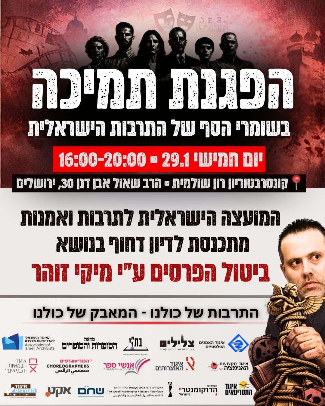 בעולם התרבות מסרבים לעבור בשתיקה על ביטול הפרסים ליוצרות ויוצרים על ידי שר התרבות, דבר שהם רואים בו רק חלק מהמתקפה החזיתית על התרבות הישראלית, שמוביל שר התרבות מיקי זוהר.